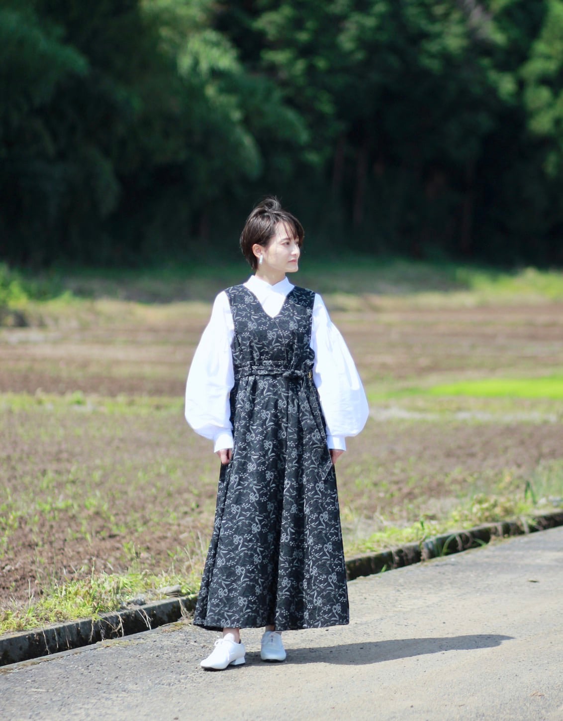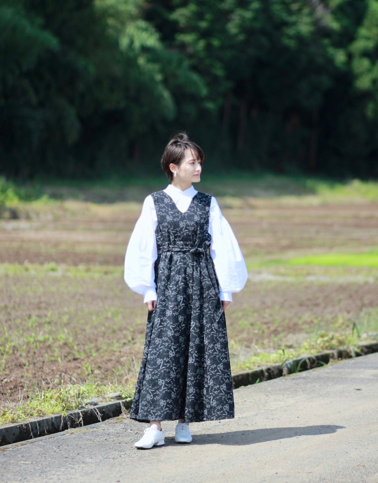 現代の女学生の制服からイメージを膨らませてジャンパースカートを作りました。