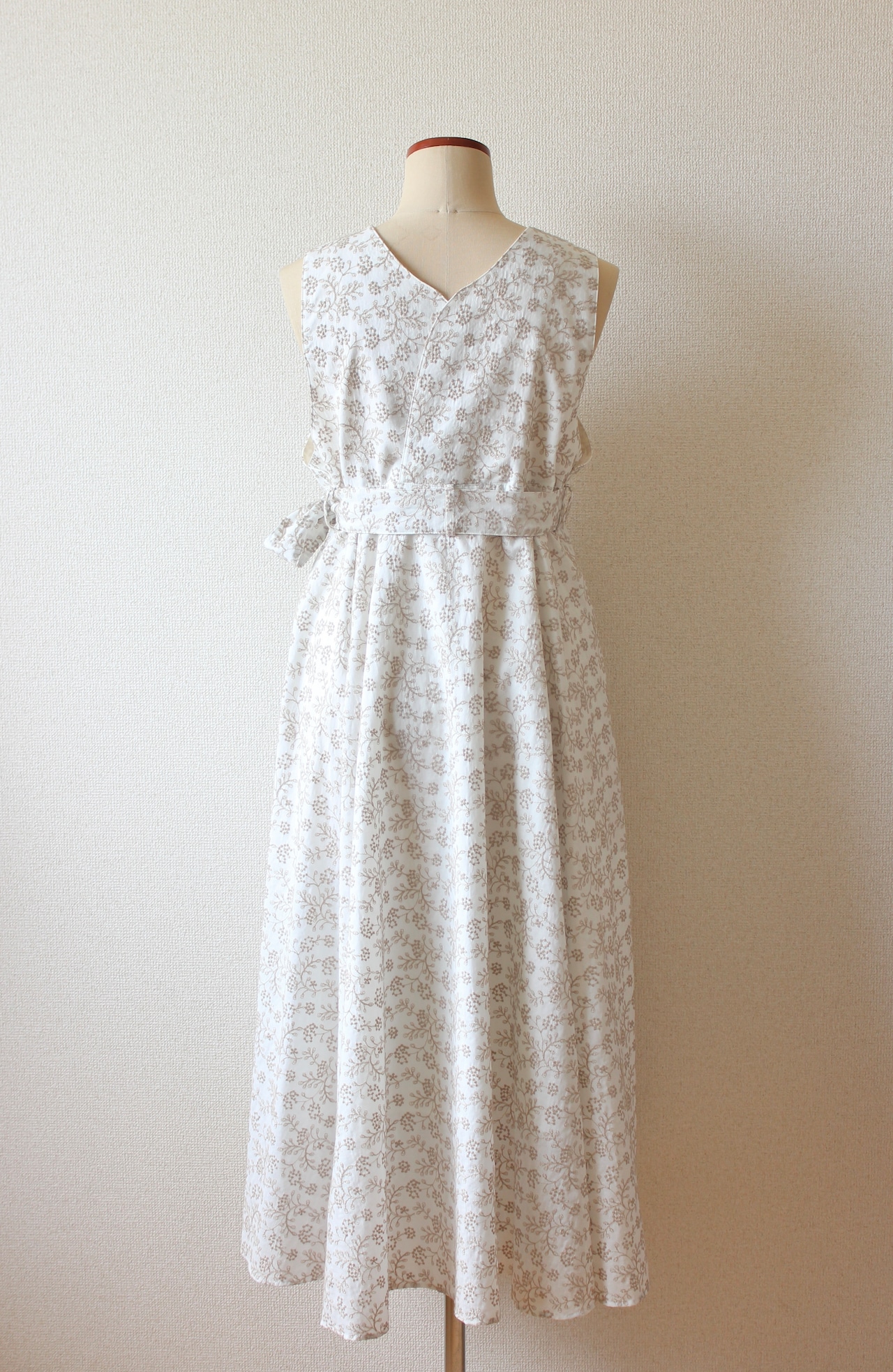ウエストの切替部分は広めに作っており、ファスナーや釦は付けておらずガバッとかぶって着る作りになっています。