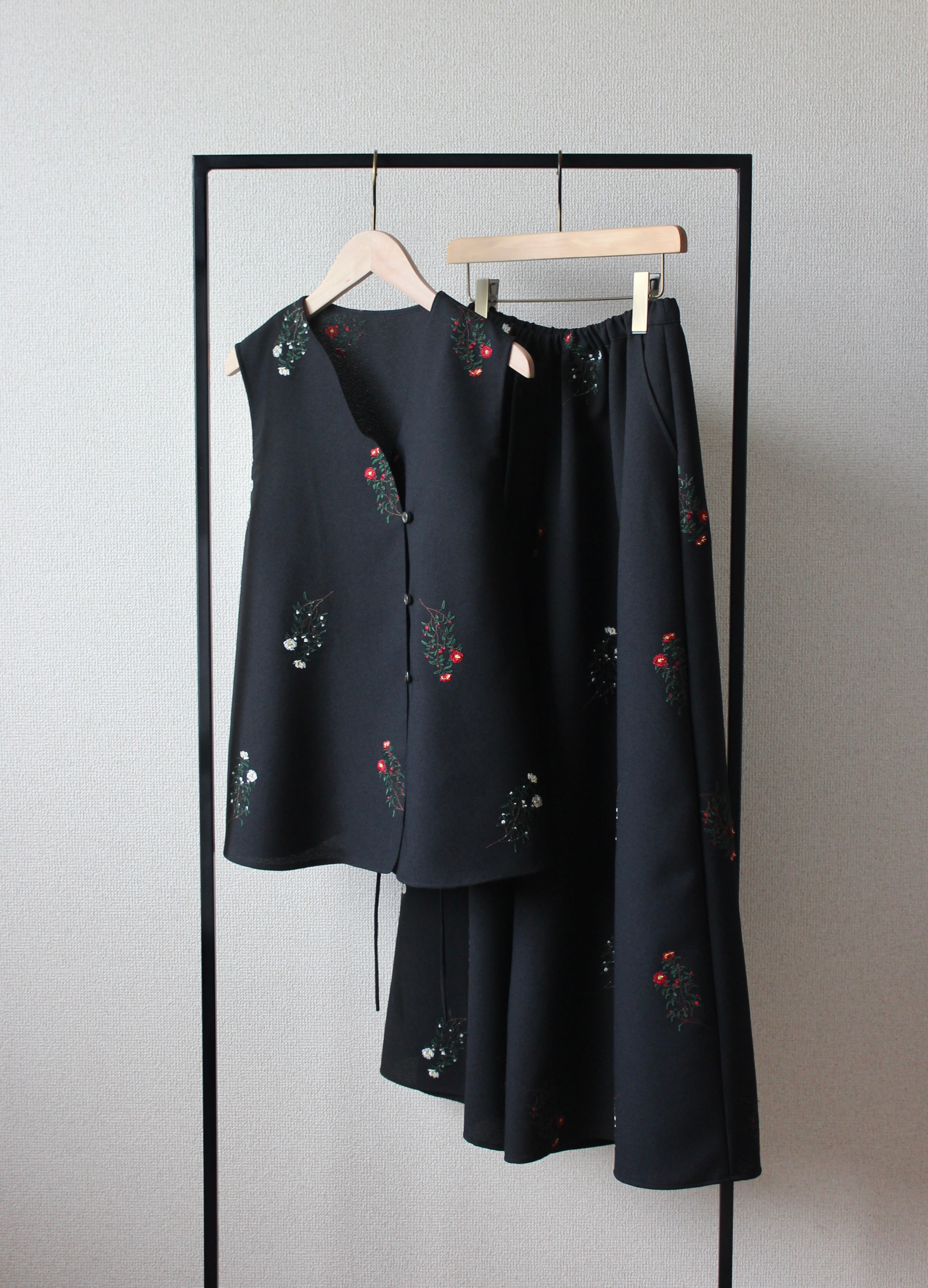 山茶花柄の刺繍生地で製作したキュロットスカートです。