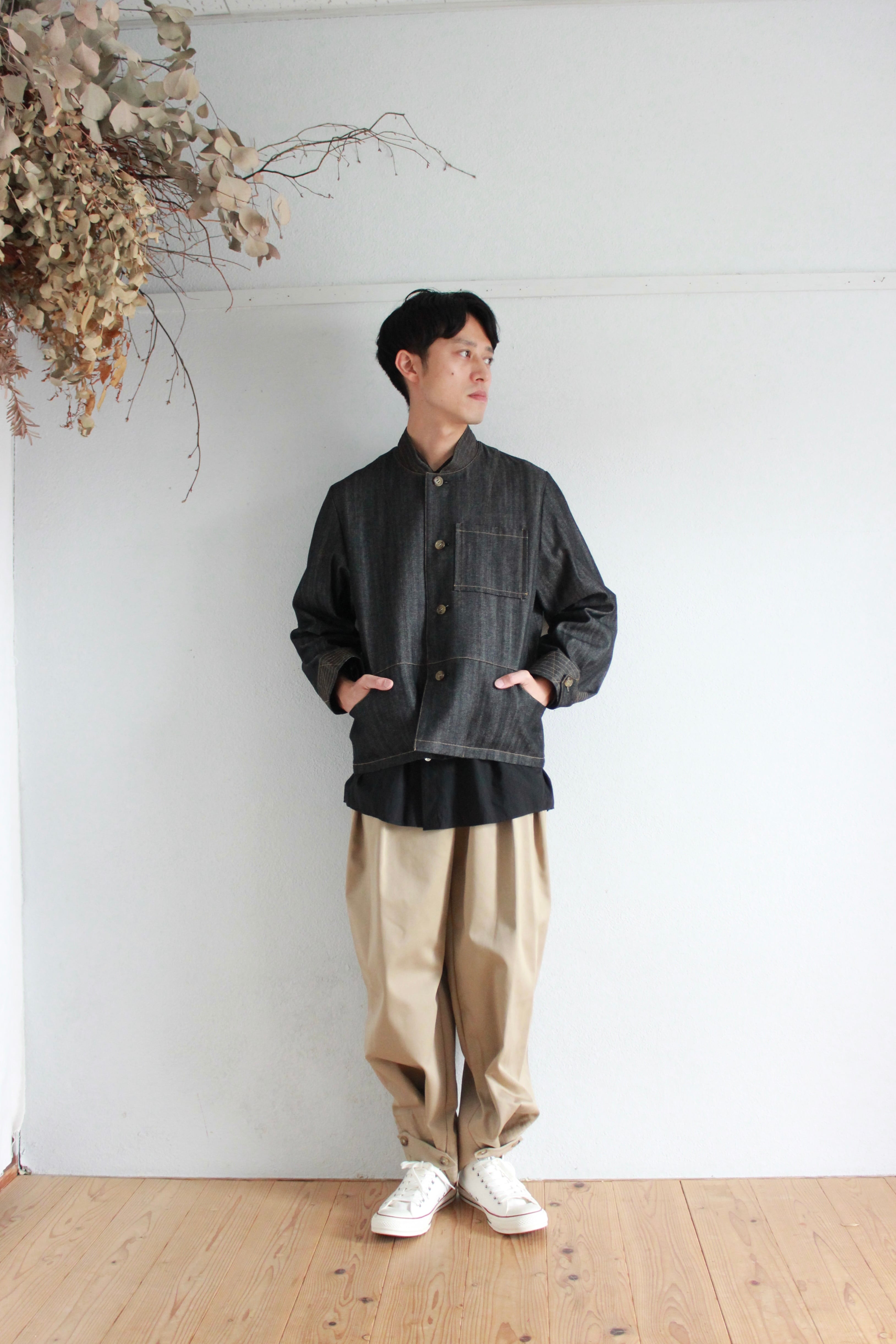 ※denim jacketやirregular tuck skirtに使用しているデニムより薄いデニム素材です。